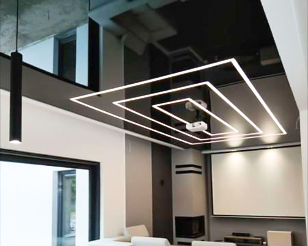 Установка световых линий в черные натяжные потолки требует профессиональных навыков и опыта. Наша компания Моссилинг выполнит профессиональную установку и сделать все необходимые электрические подключения.
