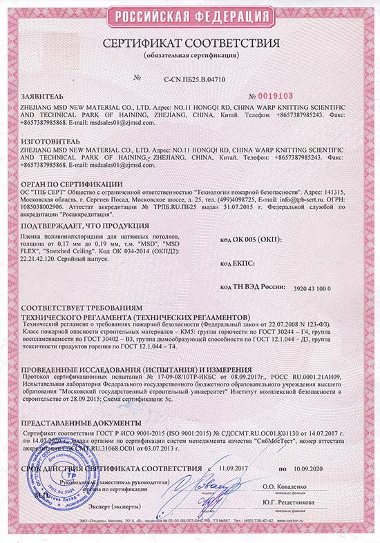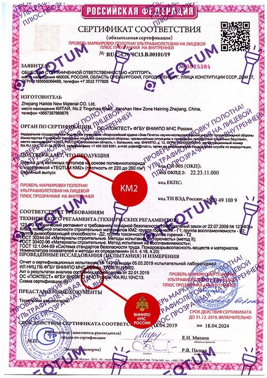 15 лет гарантии на полотно и установку